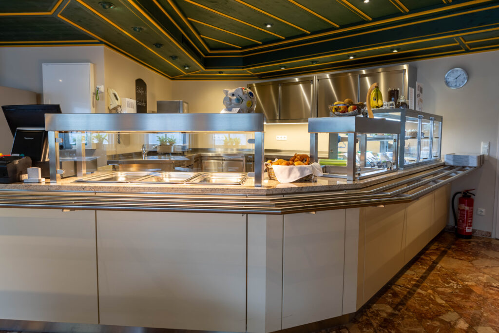 Essen und Trinken hält Leib und Seele zusammen. Deshalb möchten wir unseren Gästen jeden Tag etwas Besonderes bieten – und nicht nur ihnen. Weil die Klinik dies bezuschusst, erhalten unsere Mitarbeitenden Speisen und Getränke zu vergünstigten Preisen – zum Beispiel ein dreigängiges Menü mit Suppe, Hauptgang, Nachspeise sowie Kaffee, das auch am Wochenende angeboten wird. Zum Essen können Sie sich in einen eigenen Personal-Speiseraum zurückziehen.